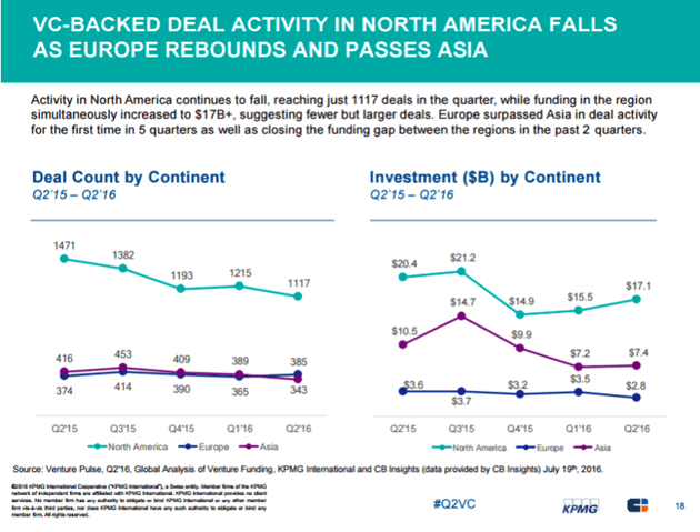 从国际创投环境看,36氪曾报道全球风投交易数连续四季度下滑,美国研究机构CB Insight和会计师事务所KPMG认为全球创投圈仍未走出冬天,亚洲风投总额猛跌,交易数量下跌了12%,同时英国脱欧的风险、中国经济增速下滑、创 业公司过高估值受质疑等不确定因素增加,一些投资人开始采取观望态度。