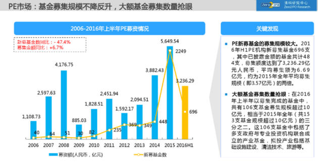 国内形势也不容乐观,清科研究中心数据显示,2016年上半年中国共发起818起天使投资,同比减少超过30%;创投市场共1264起,案例数量与金额分别 下滑30%和10%;PE虽不降反升,但主要是由于“超级独角兽”蚂蚁金服、滴滴获得巨额融资。CB Insight同样认为全球第二季度融资金额的回升主要得益于“十角兽”(估值超过100亿美元的创业公司,如Uber、SnapChat、滴滴)带来超 过10亿美元的融资。