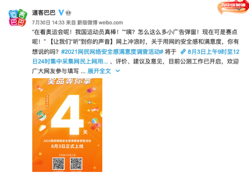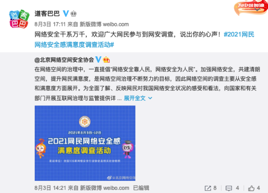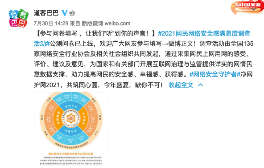 参与开展“2021网民网络安全感满意度调查活动”简报